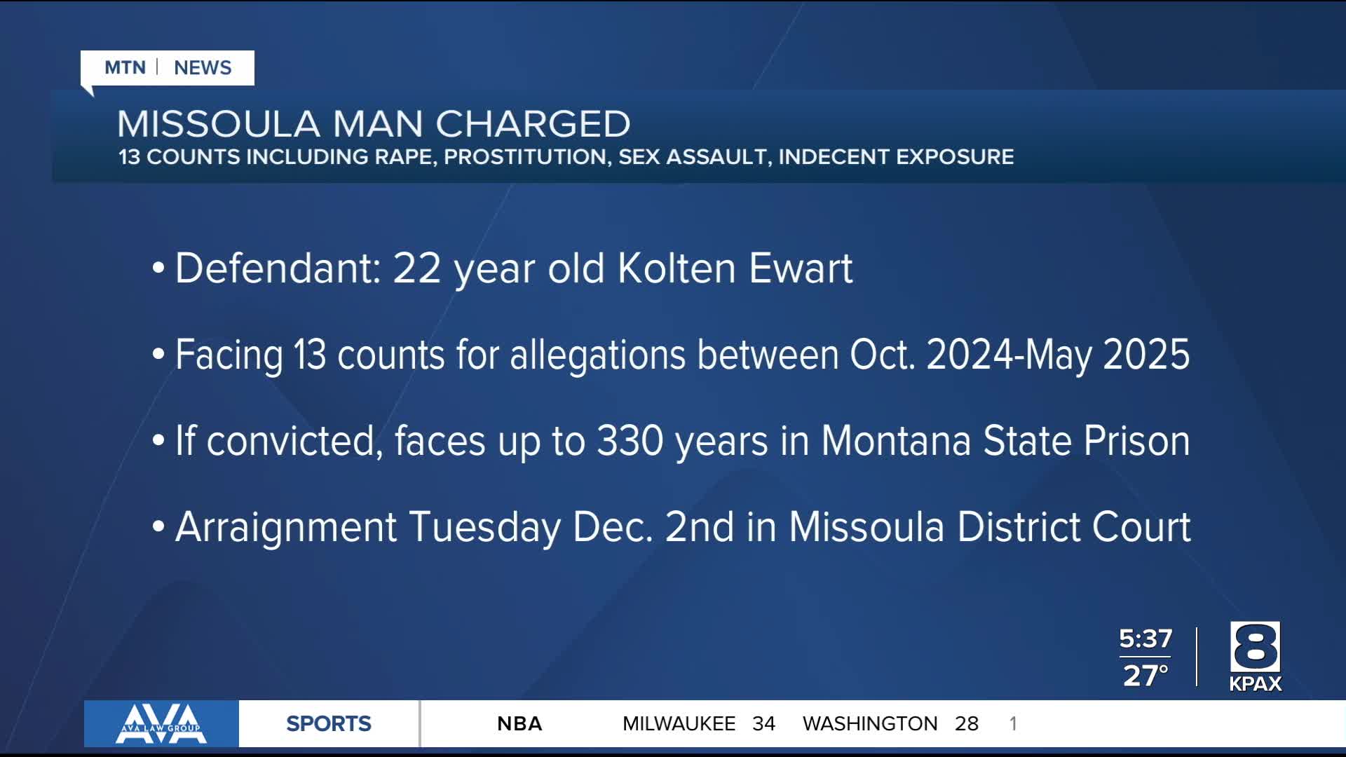 If convicted on all 13 charges, Ewart faces a possible 330 years in the Montana State Prison. He could also face a possible fine of $314,500.
