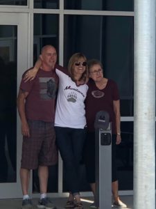 Susie Collins Hassel pictured with her mother and brother where they placed one of the Griz hats.