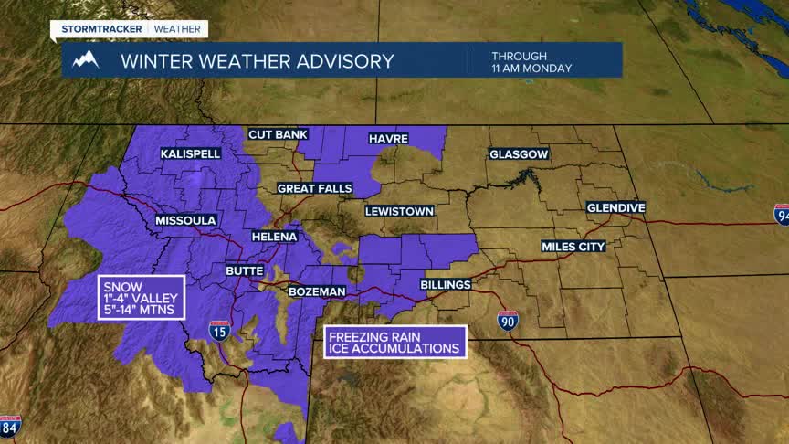 There are Winter Weather Advisories across SW Montana through 11 am Monday. This means difficult travel conditions will impact your Monday morning commute.